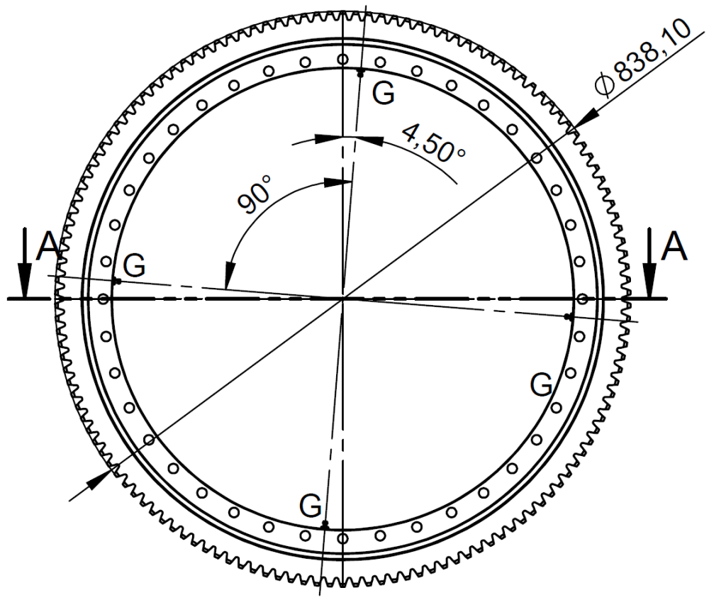 Drejekrans med udvendig fortanding