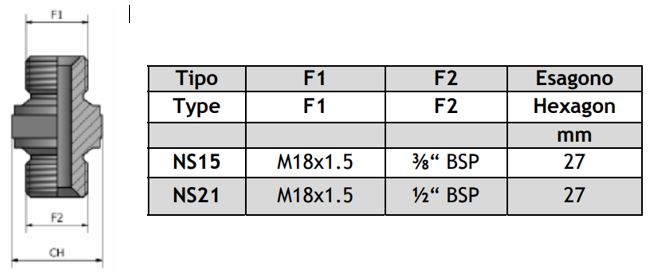 M18x1,5 til 1/2" BSP Nøgleflade 27mm