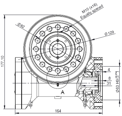 Ø129 ø20 Mekanisk stop 180 grader